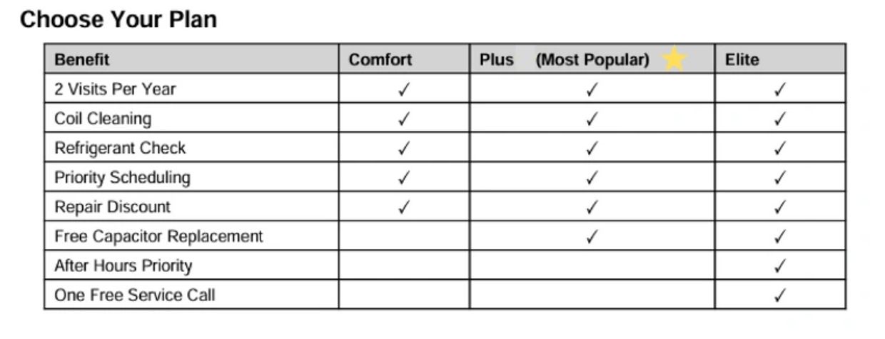 Every Comfort Membership visit includes:
